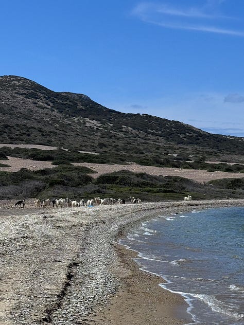 My second favorite highlight was the fishing boat and Greek BBQ tour (Antiparos & Despotiko Kaiki Cruise). We swam off tiny islands, I snorkeled for the first time where there were actually fish, and we had an authentic BBQ picnic I’m still dreaming about. We met the most incredible people and even had goats casually wandering the shoreline.