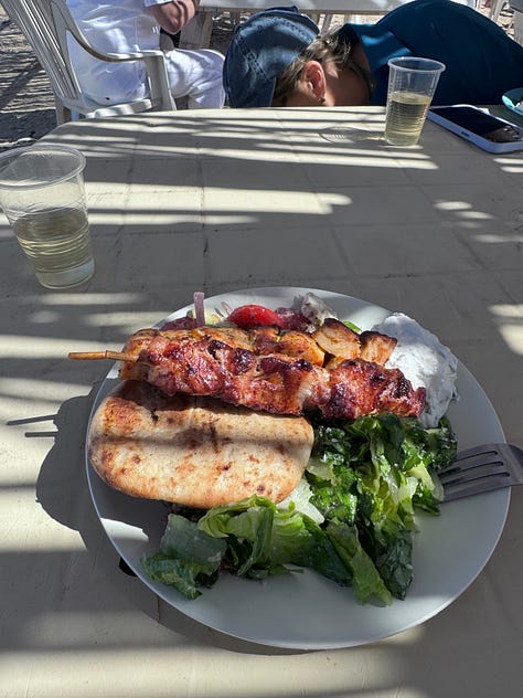A scenic lunch at Medusa Restaurant where we tried sun-dried octopus and swordfish souvlaki