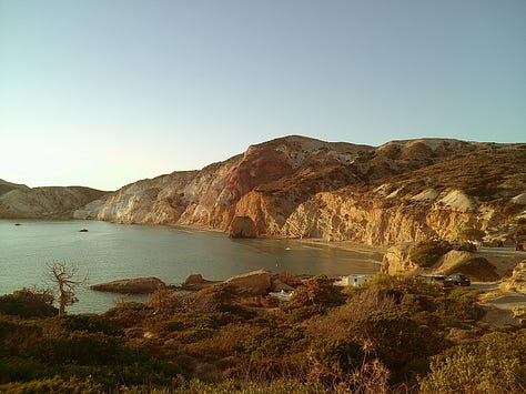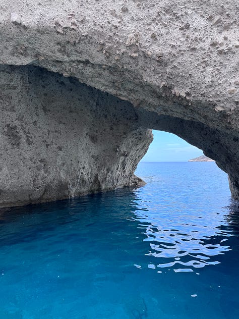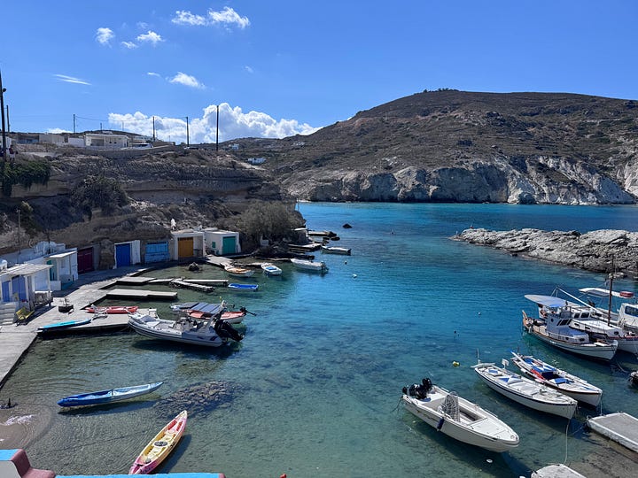 We took a ferry from Paros to Milos, and the seas were not playing around. Even with motion sickness meds and wrist bands, it was… a lot. But Milos itself made every queasy minute worth it.