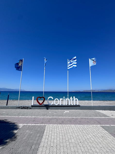After Athens, we picked up a rental car and drove toward Sparta, with a stop in Corinthia. I had done exactly zero research on Corinthia—and it ended up being one of the most stunning surprises of the whole trip.