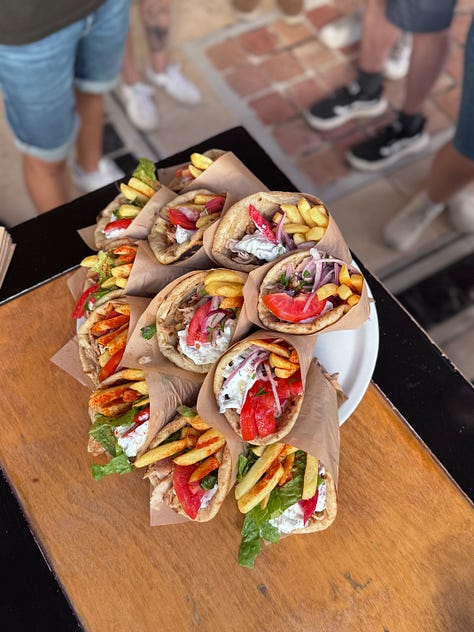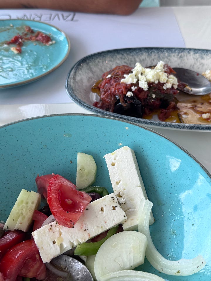 On our first night, hungry and tired, we set out for dinner without much of a plan—which is my personal nightmare as a Type A foodie in a new town. Instead of wandering aimlessly, I pulled out a list of recommendations a friend had shared. We picked one, set it in the map, saw the whole town on the walk over, and ended up having our favorite meal of the entire trip at Taverna Glafkos!