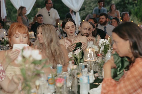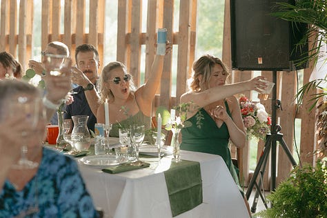 I could do a whole post on this topic alone (and maybe i will?) Instead of piecing together traditional steps, I made lists: How did I want us to feel at every turn? How should our guests feel—engaged, welcomed, relaxed, like they’re part of a family reunion? That vision shaped everything. We scrapped traditions that didn’t fit. We planned multiple group events: bonfires, brunch, evening cocktails, and multiple dance parties.